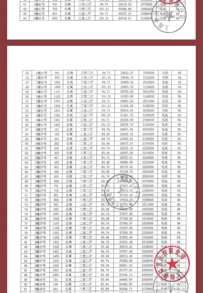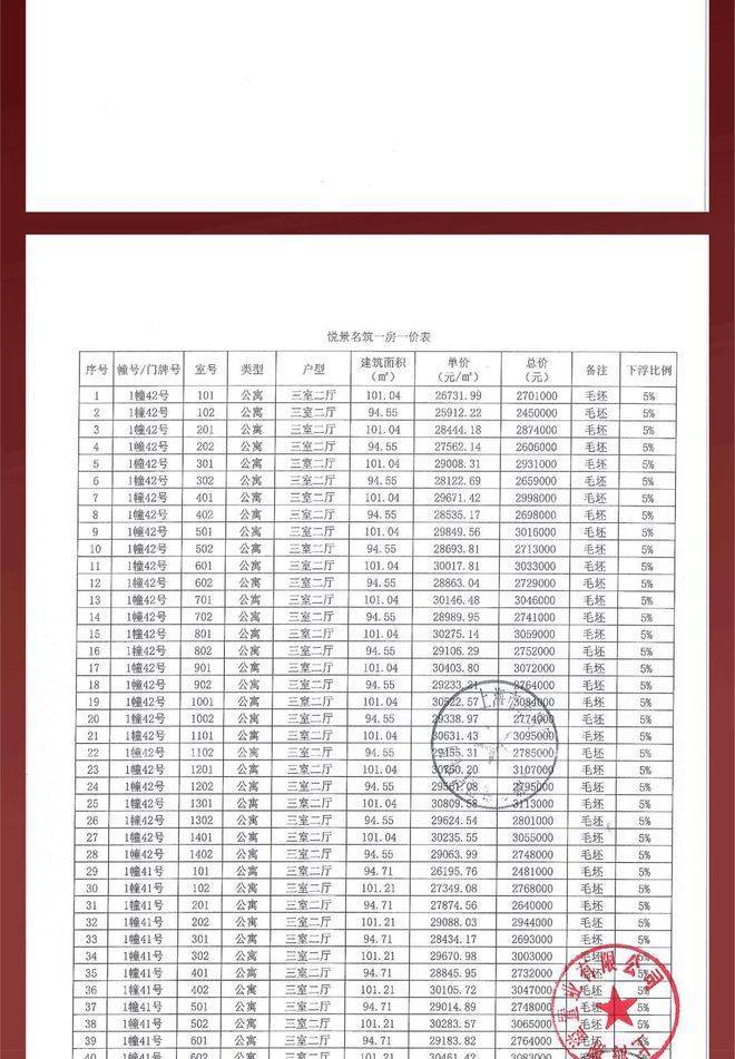 项目一房一价表