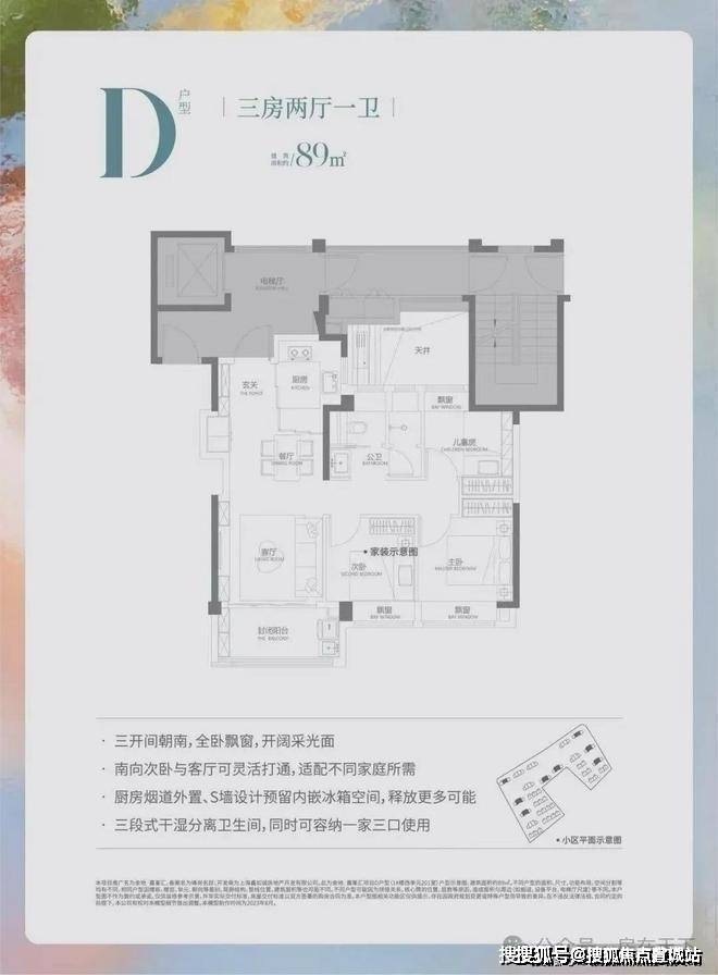 建面约89平3房2厅1卫(中间户)