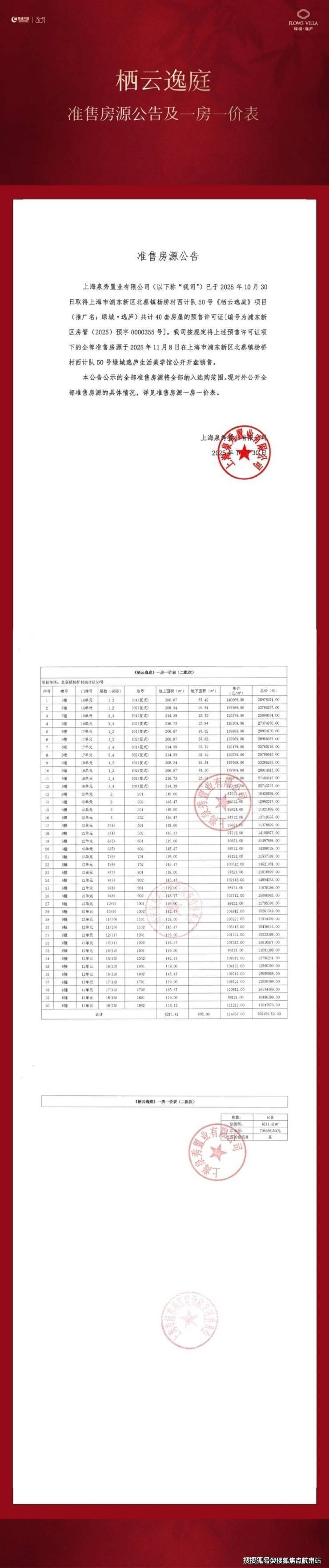 栖云逸庭|准售房源公告及一房一价表