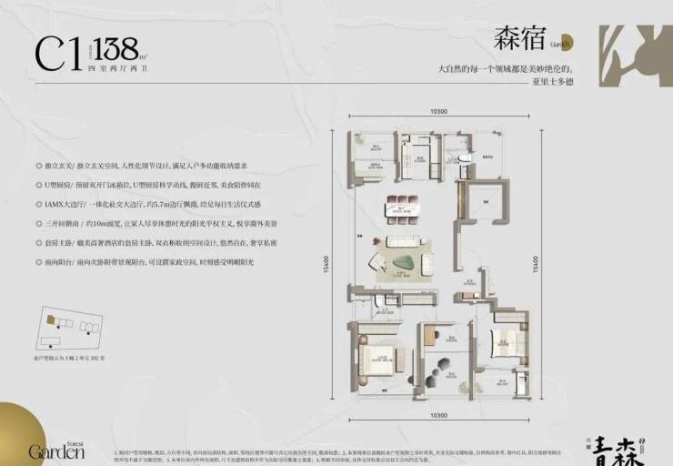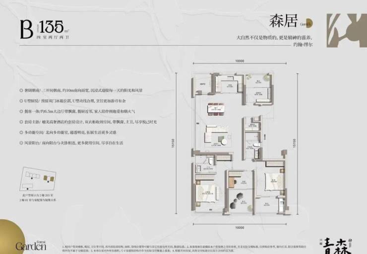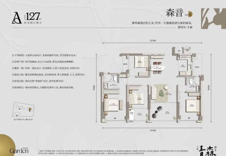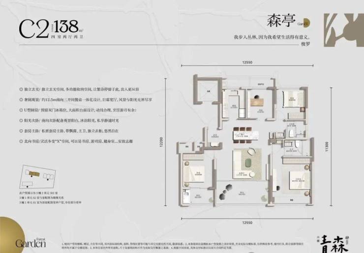 户型面积:约127-135-138㎡森系华宅