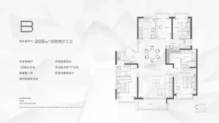 约3.3m层高+一梯一户纯大户型;沉浸式折叠园林打造的公园式住区,每天面对的都是森系有氧大境;