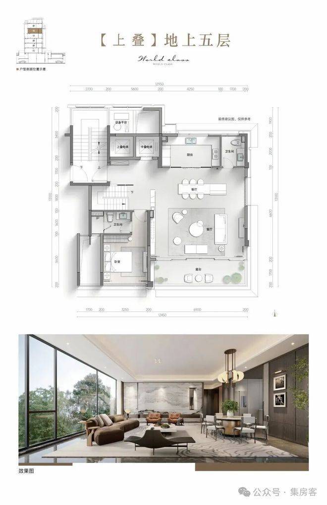 叠墅产品以高级审美+全系统高配定义高端居住标准。客餐厅地面采用灰色石材,日立中央空调、电梯及迈迪龙新风系统构成全维度舒适体系。厨电五件套包含西门子蒸烤一体机等。所有户型预留扫地机器人接口,上叠屋顶露台配备上下水,可改造为空中花园。地下私人独立车库,地下室毛坯交付后可以按自己的需求装修。
