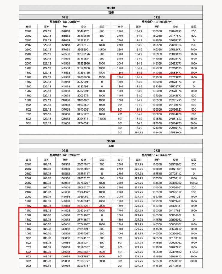注意看价格表,2500万是项目建面约185㎡的主力价格段,买的都是中间楼层,并非低区。228㎡户型最贵3794万,4千万以内的预算真的是随便选!
