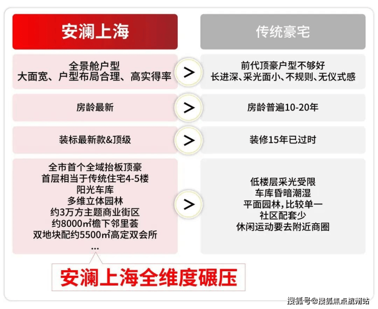 作为上海首个抬板豪宅,安澜上海从立体动线、公区、园林、户型到装修等体验感全方位领先传统豪宅