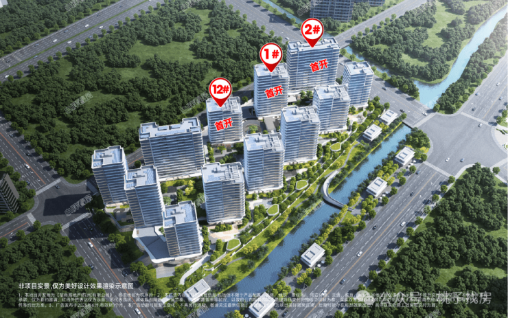 楼栋以南偏东15°错位广角布局,让每栋楼都能有上佳的朝向,同时也让南向的河岸不仅是前排的专属。
