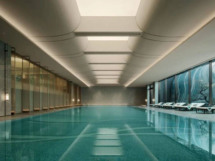 三进 青漪园:青漪园是核心庭院,它围绕着“水”展开,体现了青浦“水文化”的特点。一座隐桥从水面延伸而出,由瀑布连接直至下沉庭院,为室内游泳池提供了良好光线和隐谧美景。