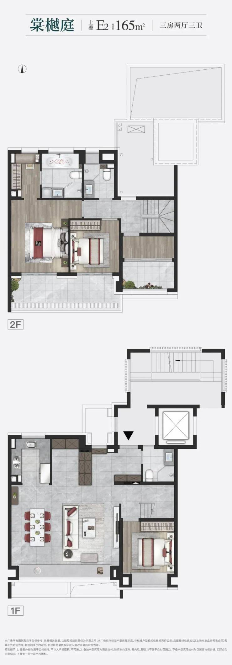 于是我们看到在加推中,有青云组团全新99㎡爆款竖厅户型,以及棠玺组团150㎡大平层和165㎡上叠、185㎡下叠。我们先来看棠玺组团!