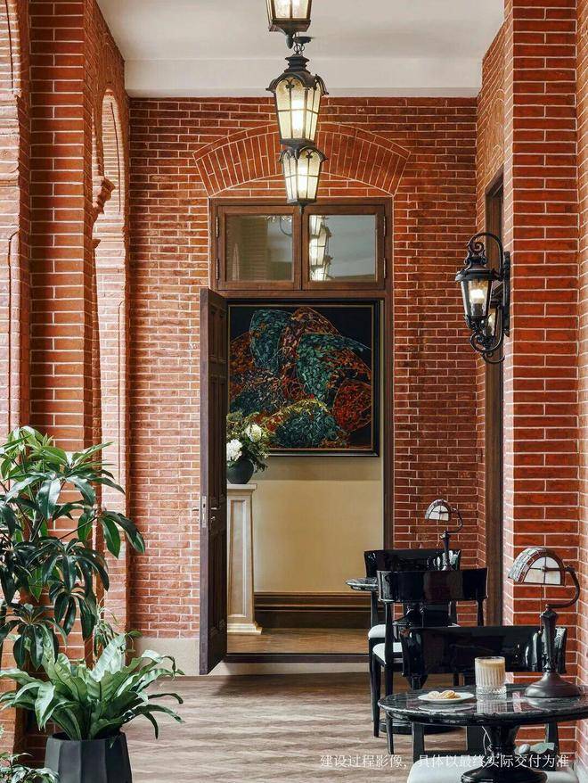 其中,手工砖与元宝缝的组合尤为经典:立面采用统一色系手工定制砖,以传统“梅花丁”砌法铺展,让墙面呈现出轻盈的韵律感;首层特别采用“元宝缝”工艺,匠人用专用工具逐缝修磨、反复塑形,使每一道砖缝饱满凸起形如元宝,触感温润,仿佛老匠人指尖摩挲过千百遍的痕迹。