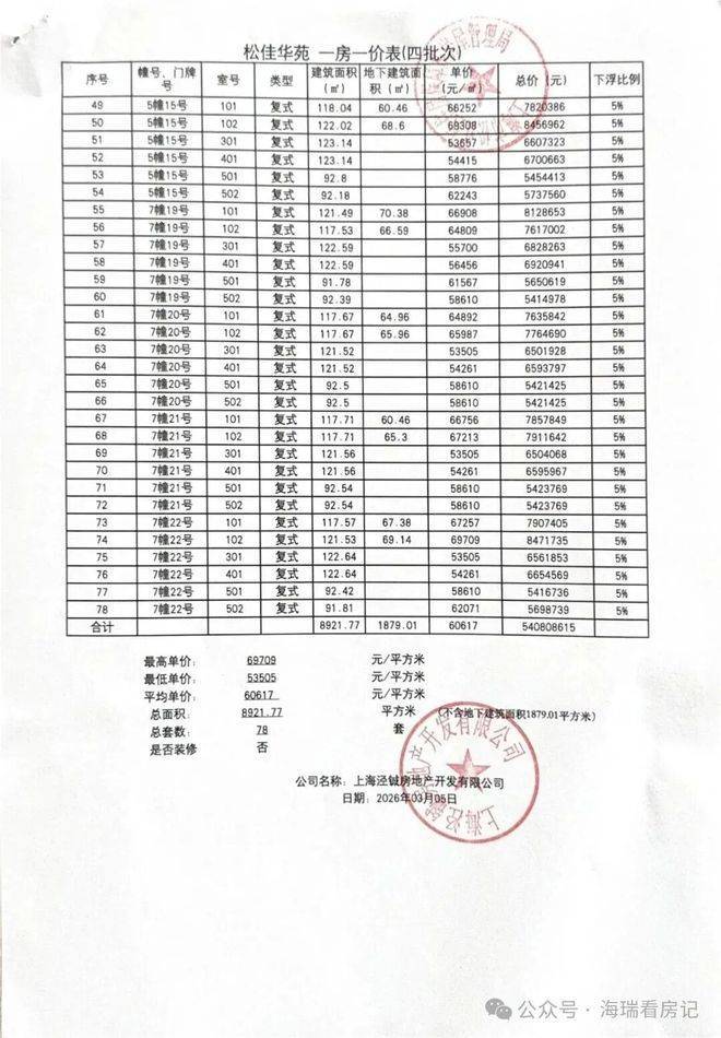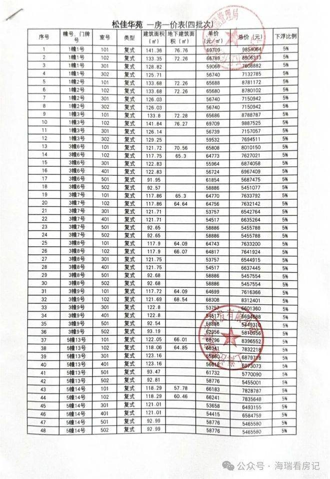 一房一价表