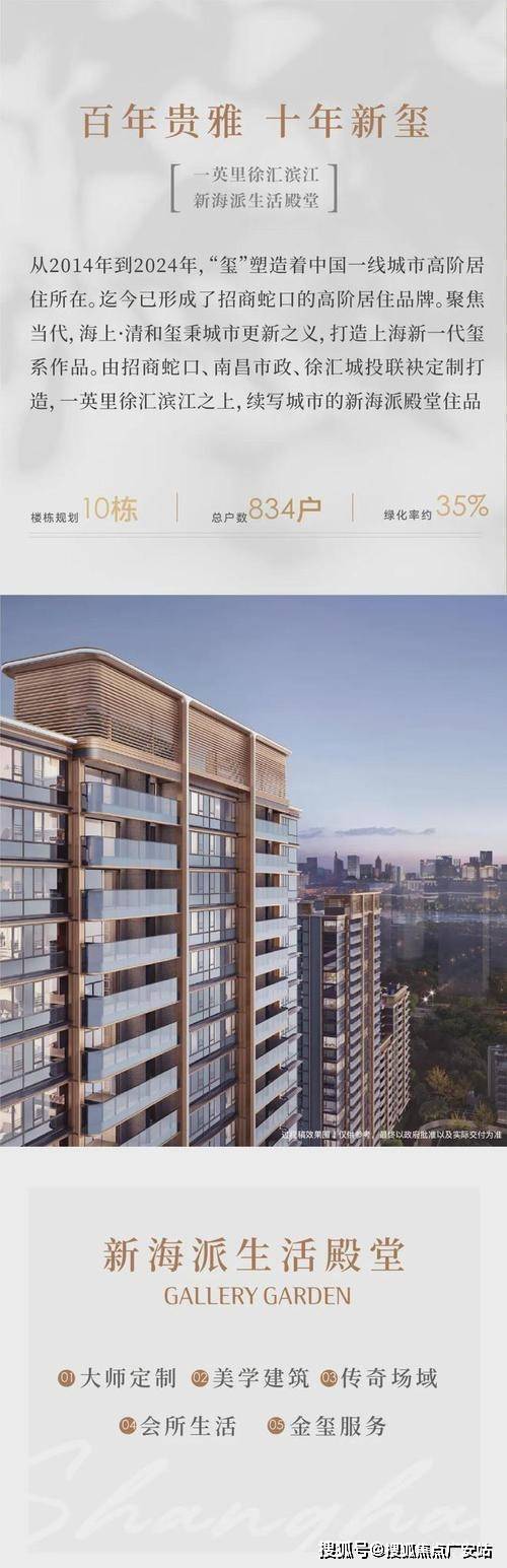从2014年到2024年,“玺”塑造着中国一线城市高阶居住所在。迄今已形成了招商蛇口的高阶居住品牌。聚焦当代,海上·清和玺秉城市更新之义,打造上海新一代玺系作品,由招商蛇口、南昌市政、徐汇城投联袂定制打造,一英里徐汇滨江之上,续写城市的新海派殿堂住品。