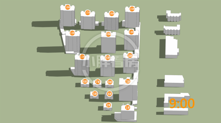 11#采光优异几乎不存在遮挡。16#低层受遮挡。就具体遮挡时间而言,16#主要在上午受14#遮挡。
