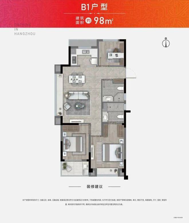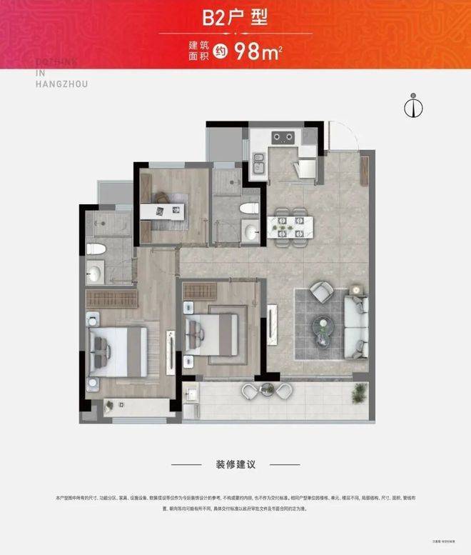 在户型设计方面,项目则是“刚到家了”!除了部分中央楼王有建面约118方户型以外,其余楼幢均为建面约98方3房2卫户型。