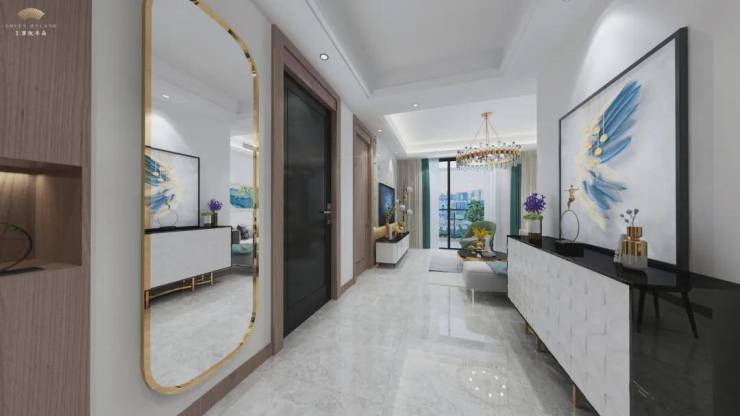(精装样板房电梯门厅实景)