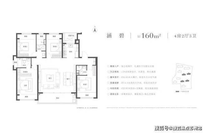 159㎡四房两厅三卫:南北通透,双套房+独立书房,约7.2米景观阳台,中西双厨配置,总价区间700-720万
