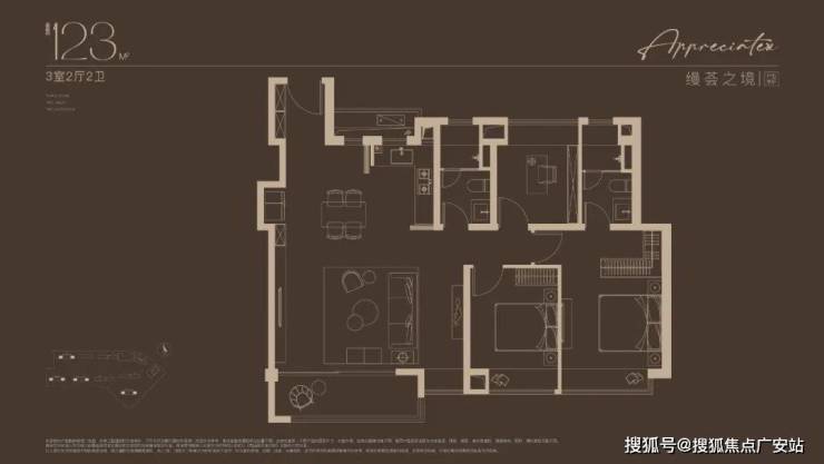建面约105-123㎡三房两卫户型,客餐厅一体化开放式设计,大气开阖又极尽巧思,超大南向面宽(105户型约9.6米南向三开间,123户型约12.5米南向四开间),最大程度揽光入室;创新研发S墙设计,预留冰箱专属位置,释放厨房使用空间;主卧套房设计规制独立衣帽间,平衡舒适与格调,为品居改善的理想空间。