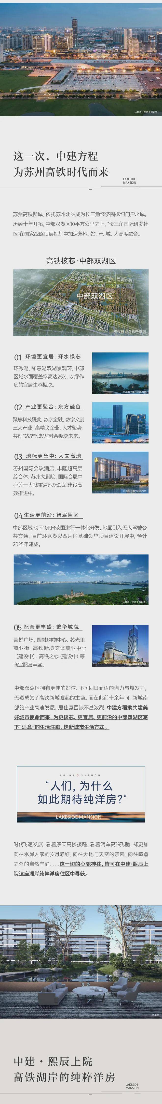 中建熙辰上院是位于苏州高铁新城环秀湖西岸的纯洋房社区,由苏州惠程房地产有限公司开发,该项目定位为高端改善型住宅,兼具湖景资源与低密生态优势。以下是综合信息整理: