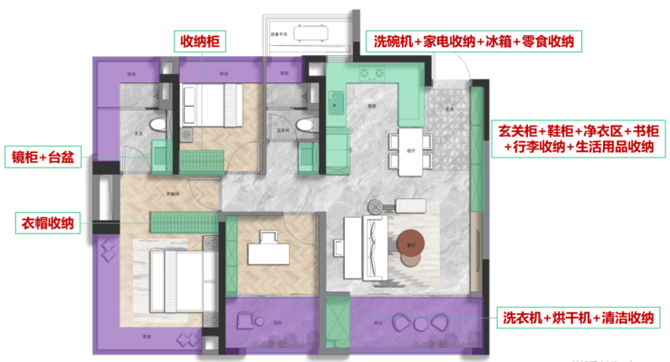 某房企曾做过一个入户调研,发现收纳已成为当下家庭的最大痛点之一。具体体现为,收纳空间不足,收纳品分类不全,家里被各类物品塞满,杂乱无序。