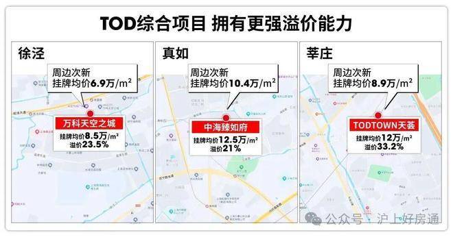 相比普通楼盘,TOD综合项目本身也有较强的溢价能力,莘庄天荟、万科天空之城等TOD项目都已给出有说服力的结论。