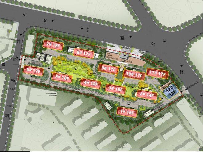 根据规划公告,该项目的投资建设方为上海南闰实业发展有限公司(南山地产),地块位于沪宜公路、群裕路、基地边界的环绕之中,总占地面积为34703.90平方米。