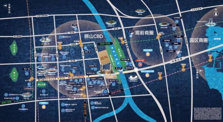 本项目在狮山 桥下,京杭大运河旁,占据了新区狮山板块的核心地段,坐享新区繁华商圈,紧邻姑苏古城风韵,集人文精神和高品质生活为一体,将打造为狮山板块乃至苏州市具有代表性的地标建筑。