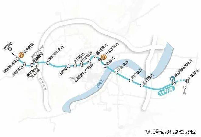 机场快线19号线:直距约870米火车西站站,始于苕溪站,通向萧山机场方向永盛站,从杭州西站到东站仅需30分钟,到萧山机场仅需45分钟。