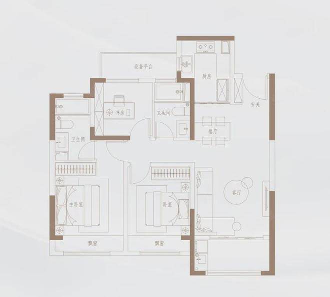 103㎡/113㎡户型较为传统,格局基本相同,3室2厅2卫,只是在尺度上有所区别。