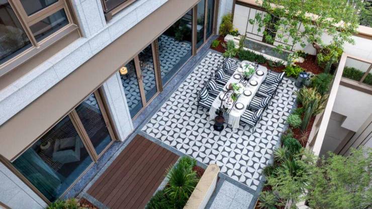 建筑学家梁思成曾说“对于中国人来说,有了一个自己的院落,精神才算真正有了着落”,云启玉渚排屋大手笔打造南北双庭院(部分),回应国人骨子里的东方居所理想。