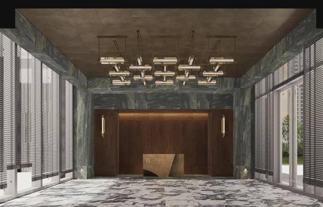 「龙盛·湾上」采用地上+地下三层同标准精装入户大堂,大堂选用有着媲美艺术品表现力的亚马逊绿天然奢石,而且地上地下一脉相承、华贵一致,结合仿古铜不锈钢、艺术壁灯为点缀,将上海的摩登气息注入归家大堂,给业主更强烈的入户仪式感。