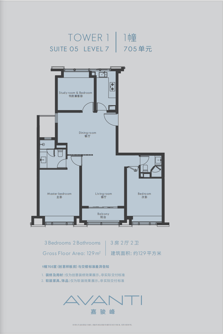 【 129㎡ 4-bedroom Unit 】 3.3 million - Distributed in Building 3, 6 elevators with 8 households, floor height 3.00 meters, total 33 floors