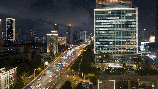 立面采用米黄色石材,仿古铜色的金属线条,再配合大面积玻璃的通透视感,超高的窗墙比,高级感不言而喻。