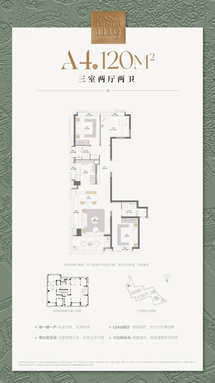 ▶建筑面积约120㎡三房户型,适配南北动静分区结构;