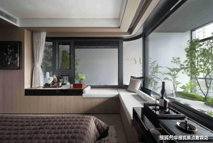 270°超大转角飘窗:是主人仰望浩瀚星空的所在,俯瞰满目绿意。三玻两腔Low-e玻璃系统窗,保证了主卧的极度静谧,兼顾功能与情感维度,创造全新的生活方式。