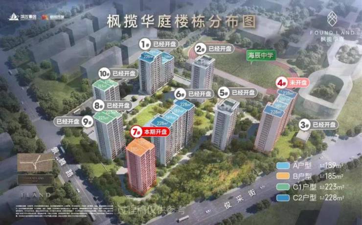 滨江枫揽华庭重磅加推7#,共1幢30房源,面积约185方,均价3.61万/平!