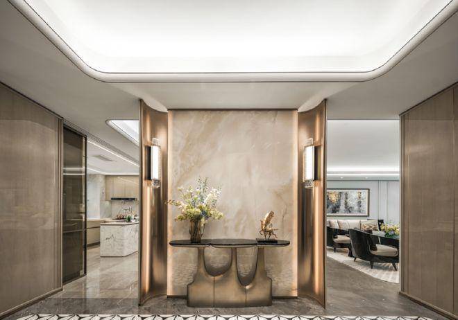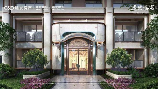萃取东方色谱精粹,建发·海宸甄选丝箔流金、东方雅铜、青釉奢蓝,以当代笔触晕染立面,令传统色彩在空间生长为永恒的诗意。入户门头形取和平饭店经典拱门,配以碧绿色天然石材门套、彩玻花窗,重现百年外滩门廊的尊崇仪式。