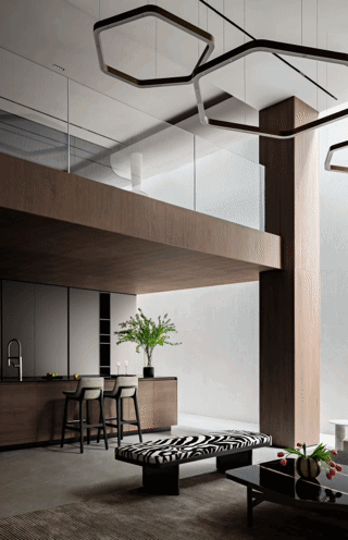 地下空间配有超大采光井,完全摆脱了一般地下室阴暗不通风的困扰。地下层高达到了约5.8米,这也让地下空间变得更灵活性:影音室、茶室、棋牌房,或是金库、酒窖、雪茄房,业主丰富的生活爱好和空间需求,都可以轻松容纳。
