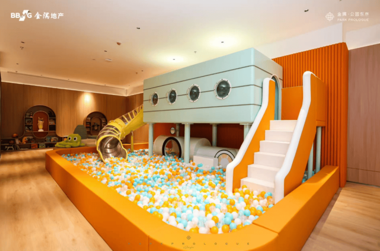 地上泛会所,涵盖了会客洽谈、儿童玩乐等多功能主题,像是一个“家外之家”。