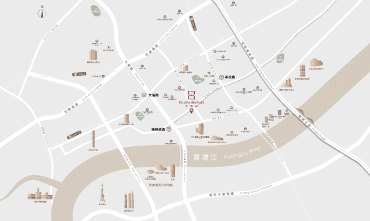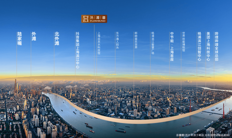 「中信泰富外滩道」地理位置相当优越!实属杨浦滨江板块内距离北外滩、外滩以及陆家嘴最近的新盘!