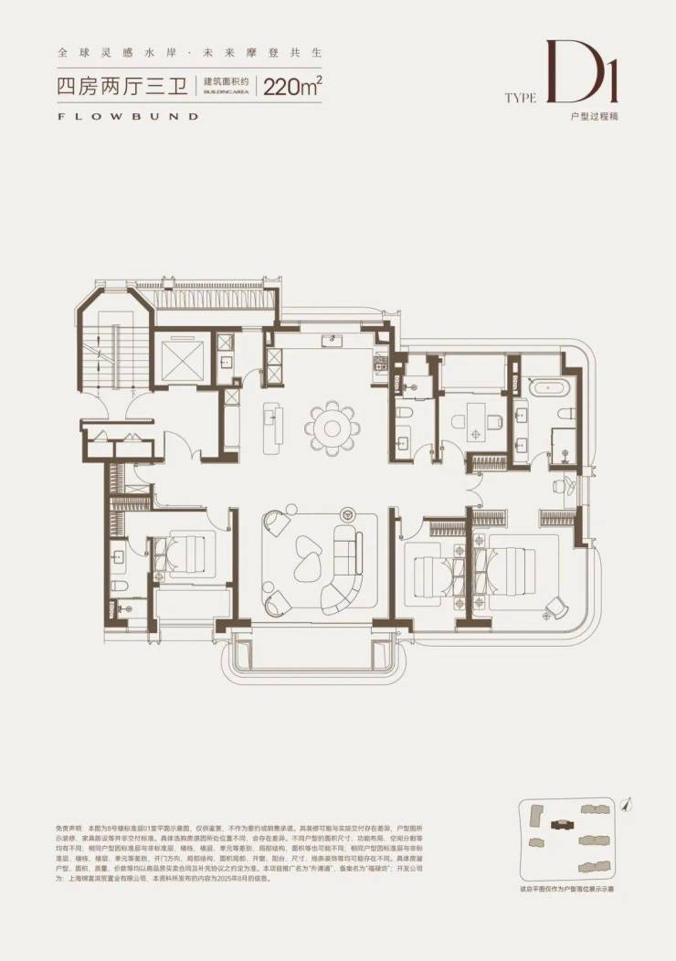 建面约220㎡4房2厅3卫户型