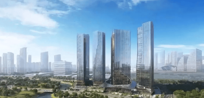 建筑设计荷兰UNStudio事务所操刀,以“天幕聚落”为理念,玻璃外墙呼应杭州丝绸文化,塔楼呈流线型地标13