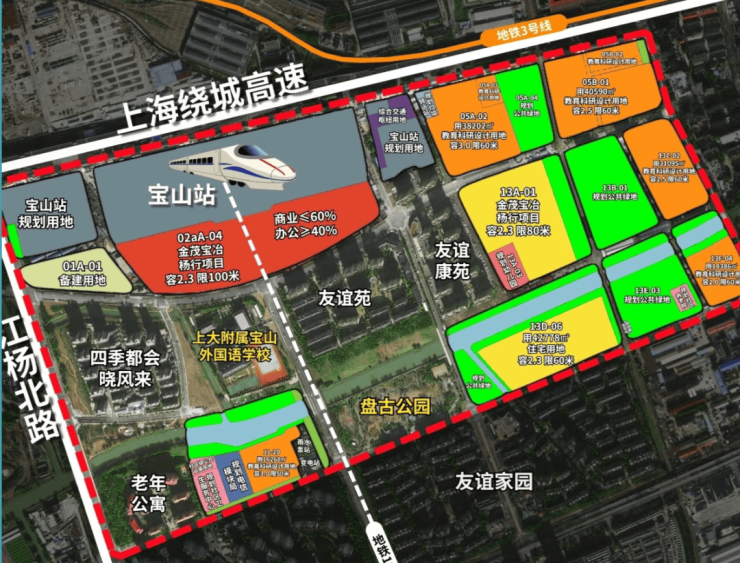 2024年12月30日,金茂&宝冶&杨行城建于2024年八批次土拍中以31.16亿竞得宝山站商住组合地块(宝山区BSP0-0801单元13A-01、02aA-04地块),楼面价9058元/㎡,住宅中小套型占比50%,集采价2500元/㎡。
