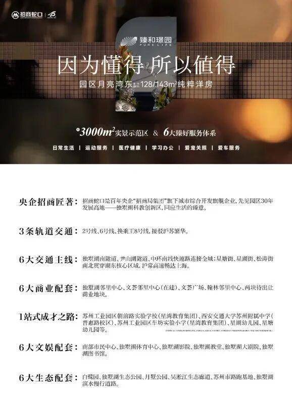 湾不仅是时代发展的前沿,也是城市资源的极核。招商蛇口恰遇园区月亮湾东,续写从金鸡湖到独墅湖不断潮前的园区故事。同时板块内兼具7大功能配套,满足全方位生活所需。