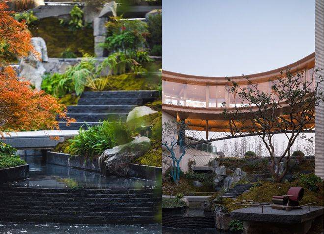 项目约450㎡开阔水院如天空之镜,下沉庭院飞瀑流觞,甄选百年红果冬青、染井吉野樱、羽毛枫、桃树等名贵树种,三季有花、四季有景,行走其间,流水叮咚、绿意盎然,宛若置身千年桃花源。