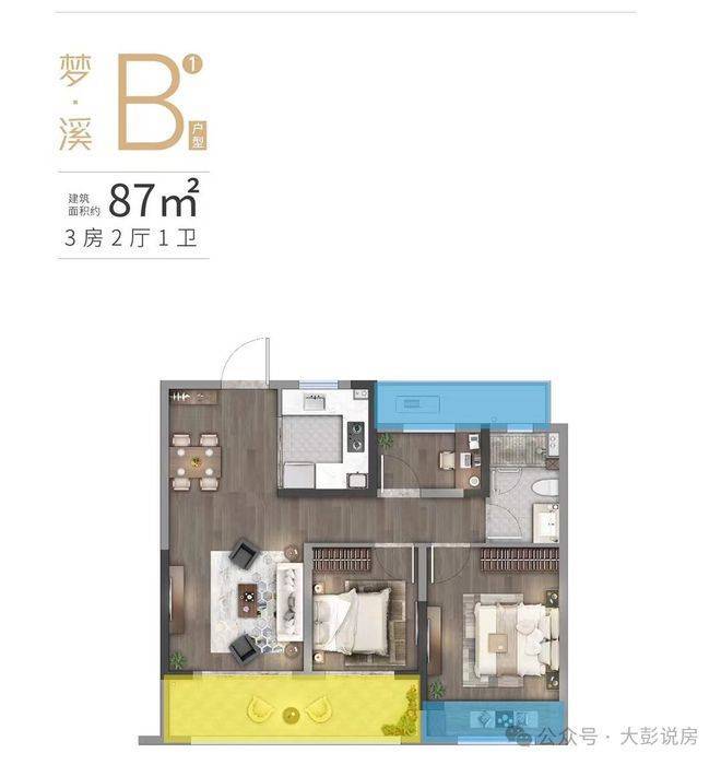 【梦溪B户型 】‼️建筑面积约87㎡‼️