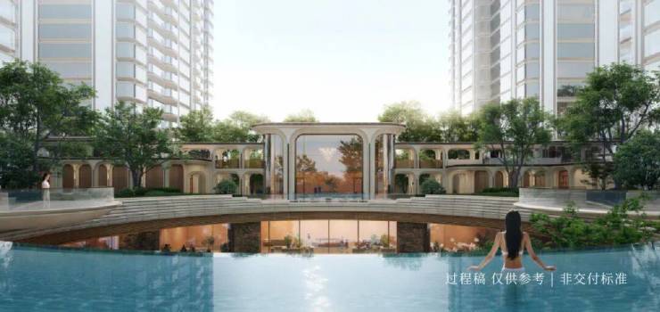 中央园林围合出下沉式庭院,园区内带景观廊架,人行主出入口位于小区东侧,入口直接能看到整个豪华园林,预计会非常壮观(期待实景呈现)。