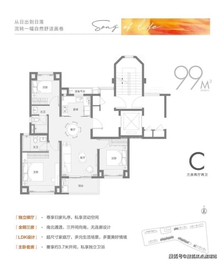The building surface of about 99 square meters, 3 rooms and 2 bathrooms not only retains the advantages of three rooms facing south and dining room integration, but also makes great strides in scale.
