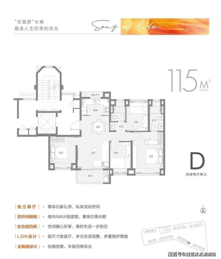 另一方面,建面约88-115㎡房型,做到了无连廊设计,电梯厅直接入户!