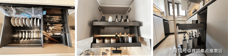 厨房配置分层抽屉、多功能拉篮、储物吊柜等多元收纳空间,让台面更加整洁;