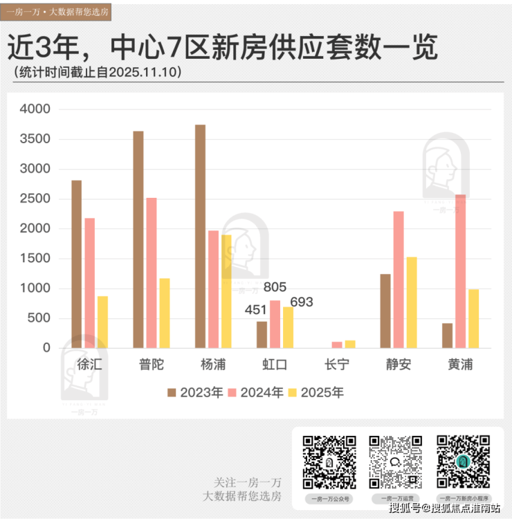 根据一房一万数据库显示,近三年,虹口的新房供应量在中心城区中几乎垫底,总量不足2000套。
