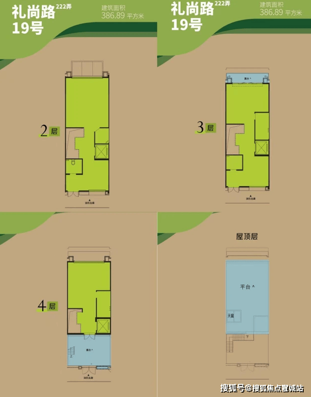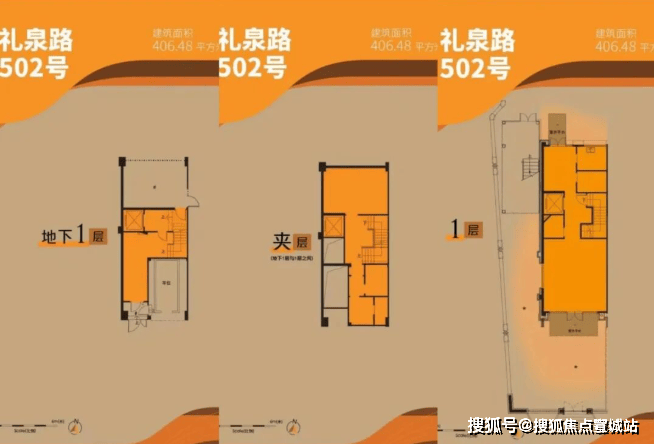 主力户型:建面约386-406㎡的沿街联排商业别墅,含地下77-95㎡空间,地上4层、地下2层(夹层+B1层),可灵活设计为商业、办公或居住空间。