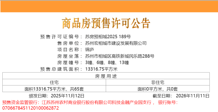 在拿地约8个月之后,位于高铁新城的绿城宸庐就取证了!